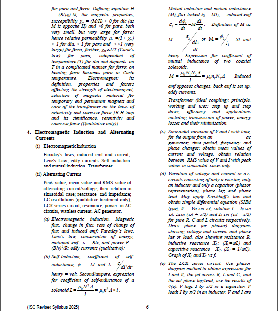 ISC Class 12 Physics Syllabus for Exam 2025